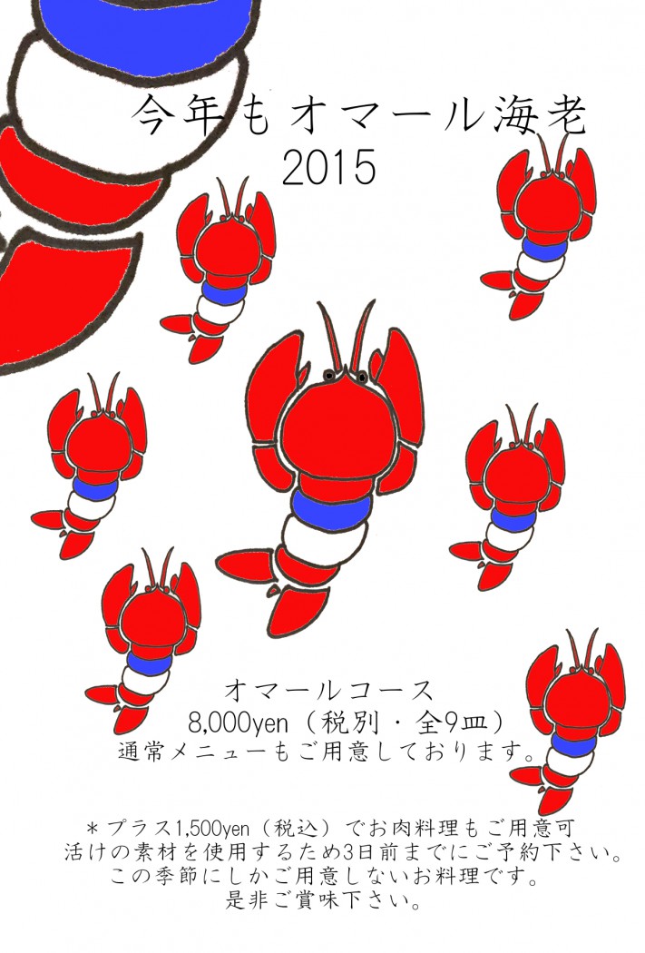 今年も、毎年恒例のオマール海老が入荷いたします。